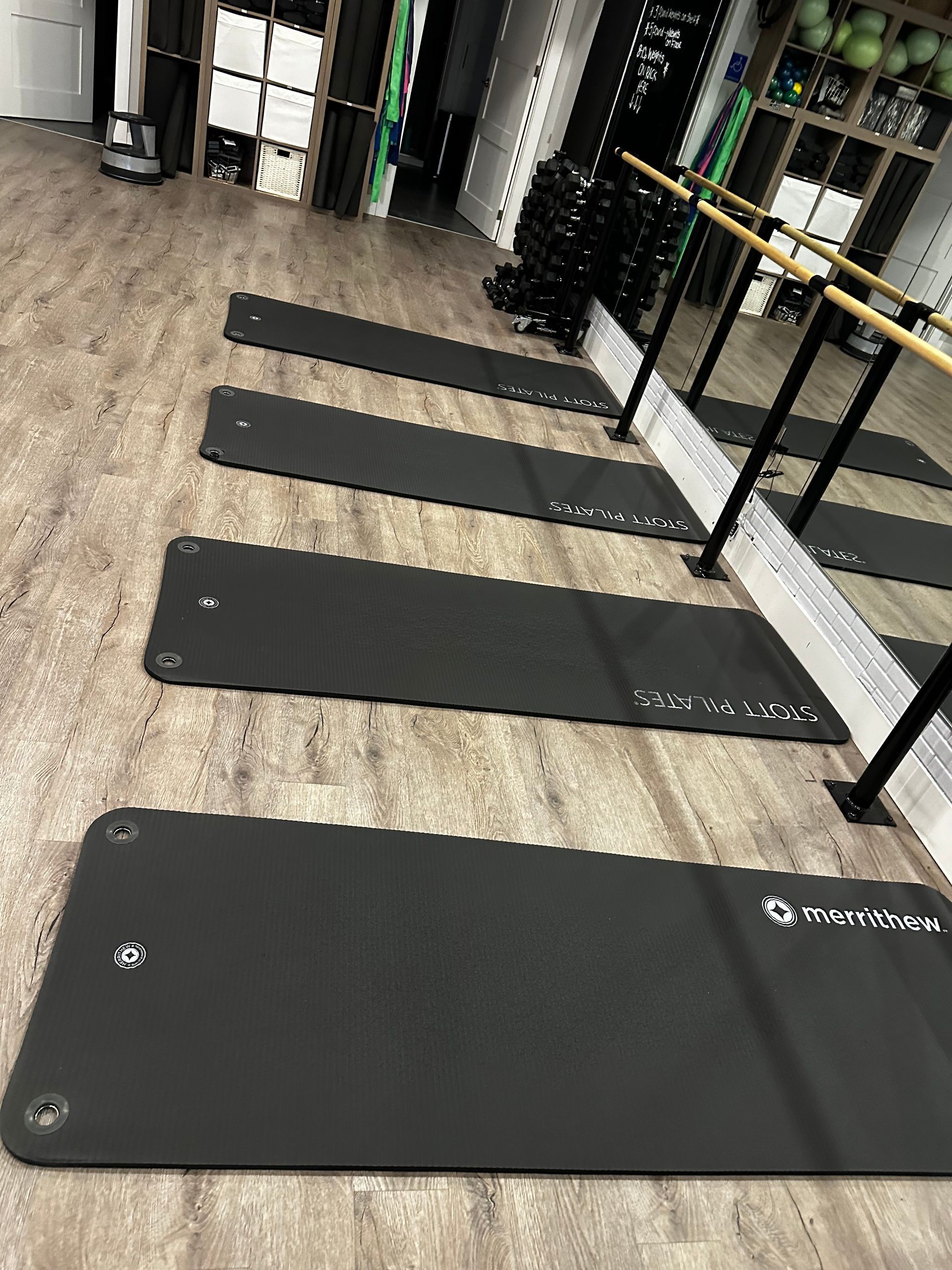 - Instruct members to place weight at the back of the mat so isles & front of mat is clear.