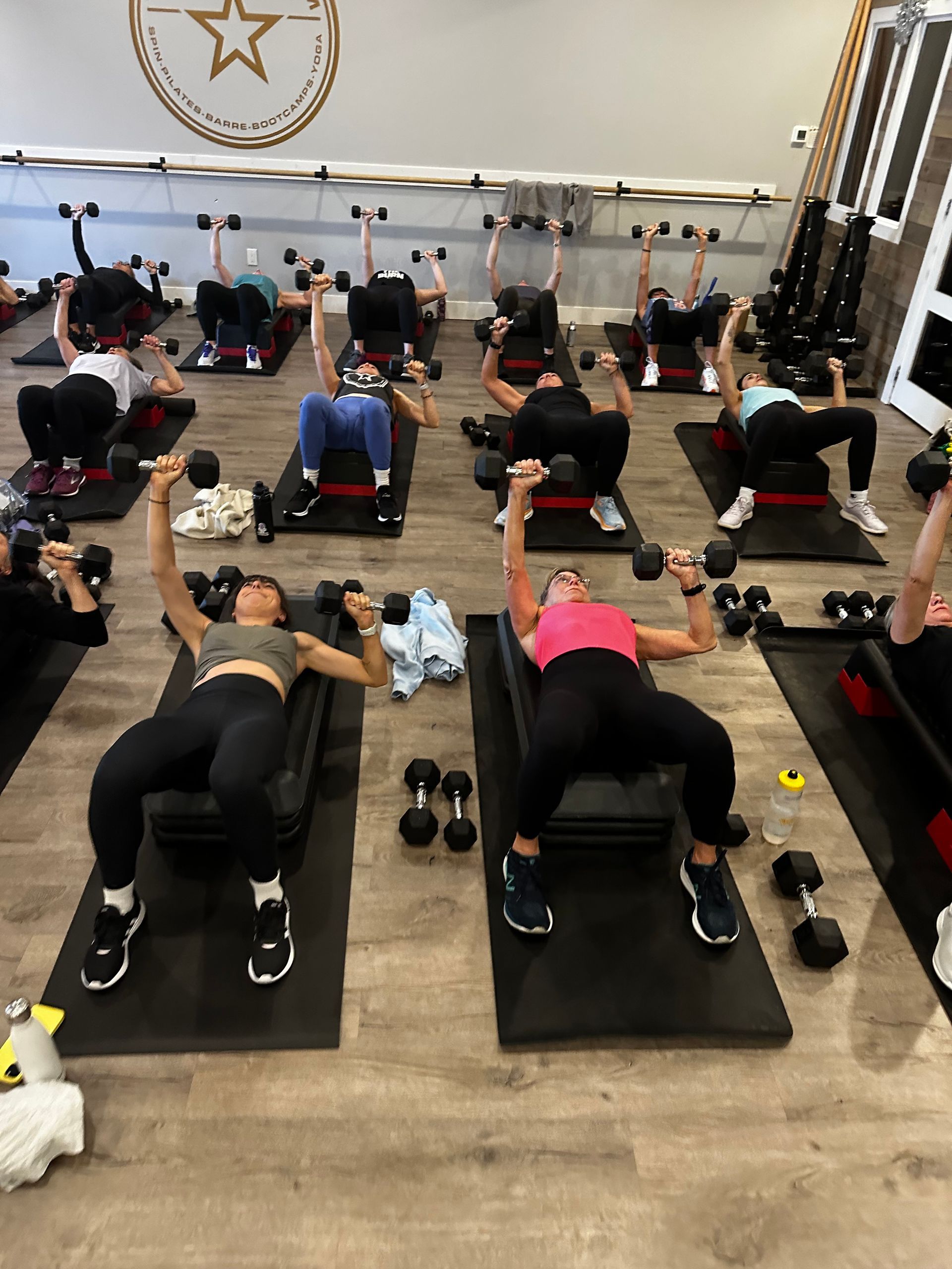 - If class is less than 12 people do not use the middle barre, otherwise always set up the middle Barre.